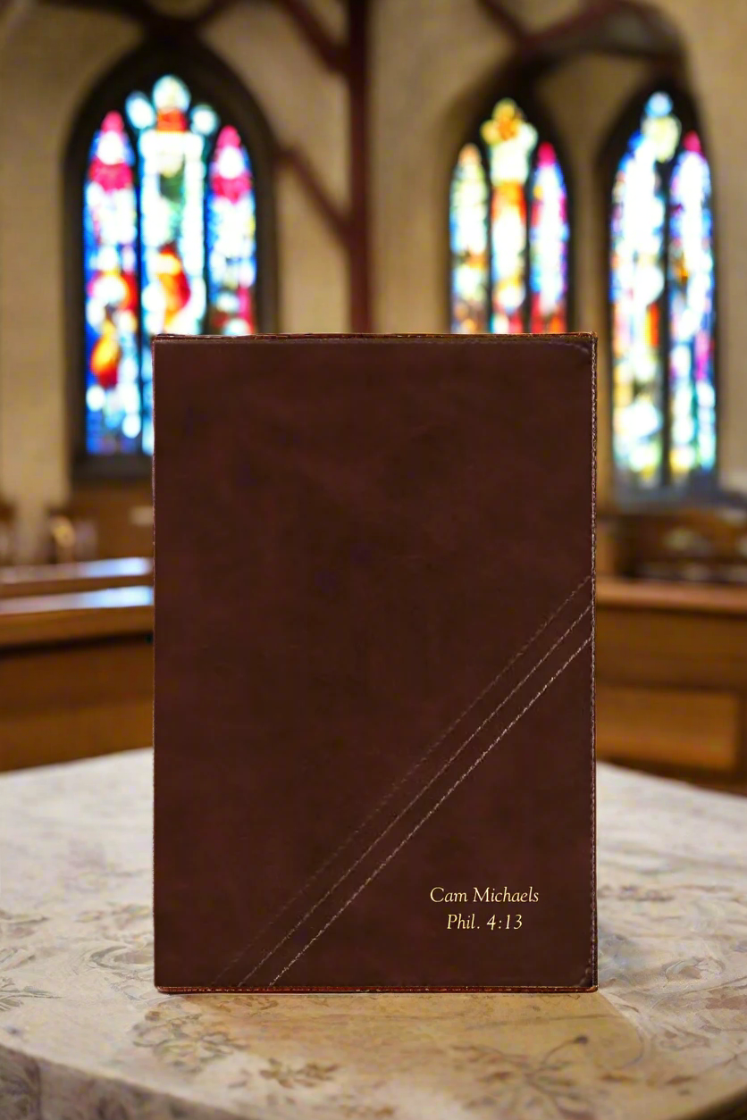 Celebrate Your Faith can imprint a Name, Bible Verse, Special Date or other significant information on most of the Bibles, Journals and Photo Albums that we carry. We provide high quality personalization.