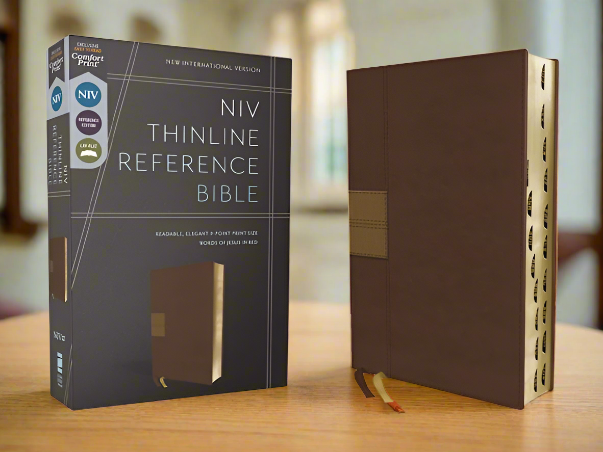 NIV Thinline Reference Bible (Comfort Print)-Brown Leathersoft